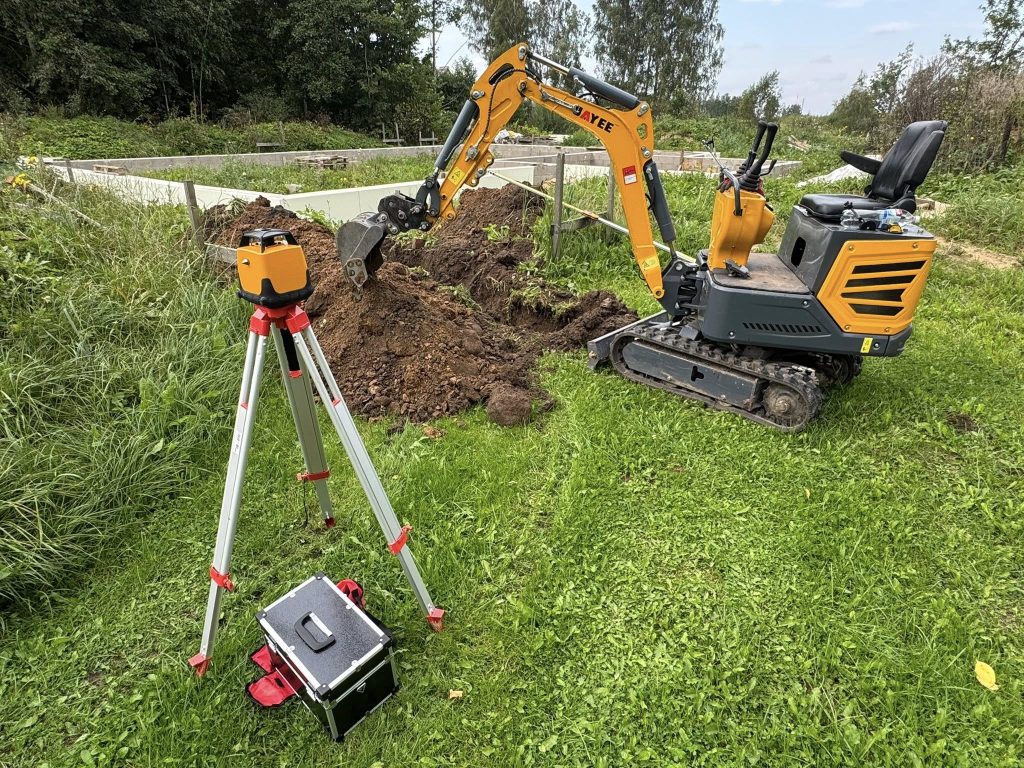 Nepieciešamības gadījumā strādājam ar nivelieri.